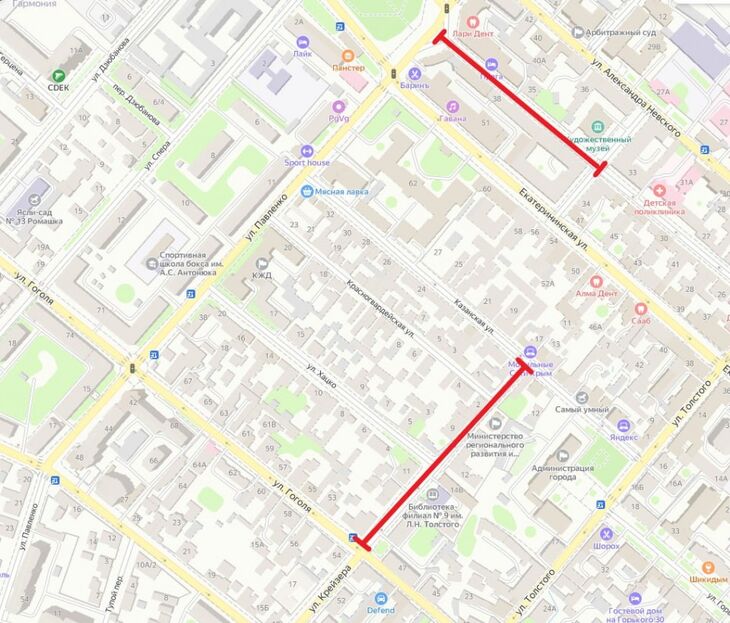 Так, движение по улице Долгоруковской будет ограничено от переулка Галерейный до улицы Павленко). По улице Крейзера – от улицы Гоголя до улицы Казанская.