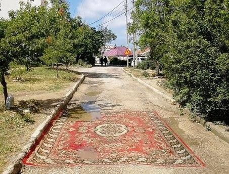 «Аладдин припарковался»: в Севастополе дорогу подлатали ковром (ФОТО)