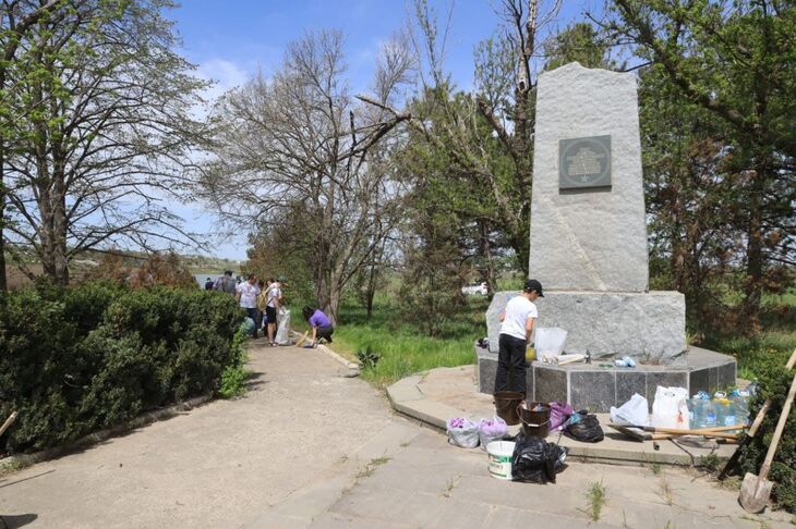 Аллею у братской могилы в Трудовом подготовили к празднованию Дня Победы