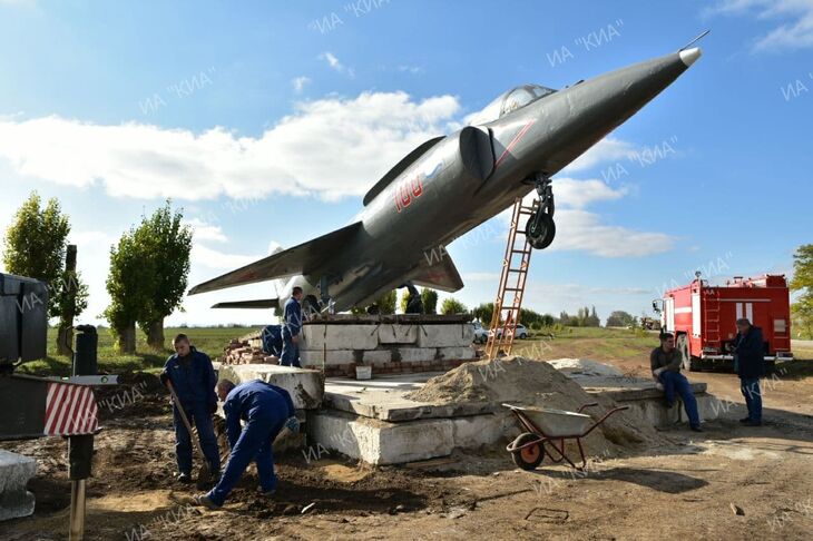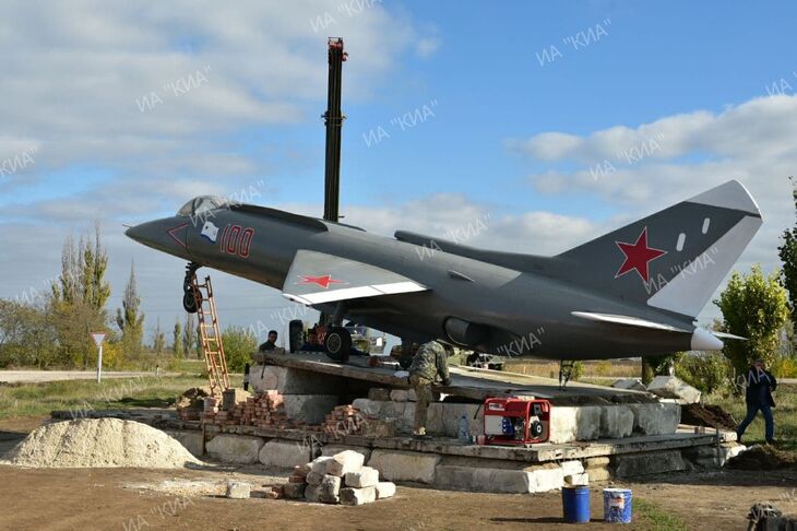 Сегодня на месте будущего музея строители приступили к монтажу постамента и установке первого из пяти планируемых самолетов-экспонатов – Як-38.