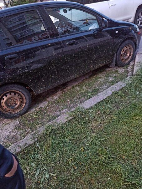 «Кто отвечать будет за порчу имущества? Машина стоит в кармане. После дождя вся машина мокрая, вместе с травой, которую косят, летят и мелкие камушки. Мало того, что вся машина в траве, которая прилипла намертво, так ещё и сколы в подарок», — возмутился автовладелец.