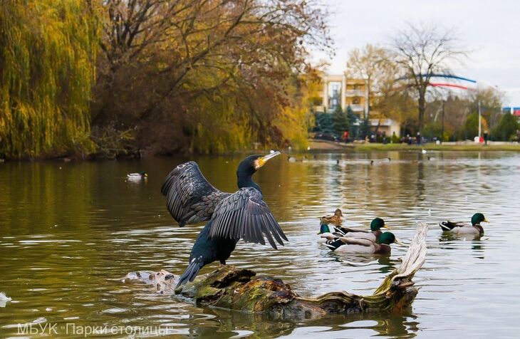 Баклан Яшка снова прилетел на зимовку в парк им. Гагарина в Симферополе