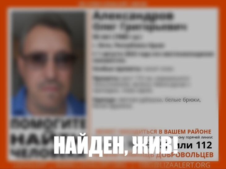 В Ялте две недели назад без вести пропал 55-летний Олег Александров. Его нашли живым. Об этом сообщили в поисковом отряде «ЛизаАлерт» Крым.
