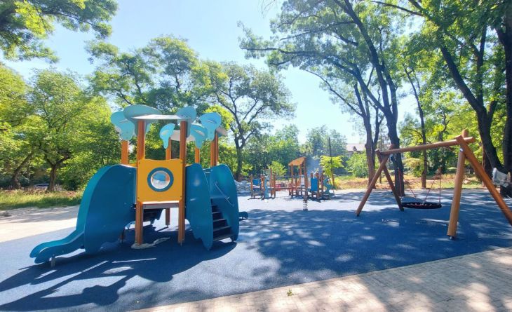 Завершена установка детской игровой площадки, скейт-парка и спортивной площадки.