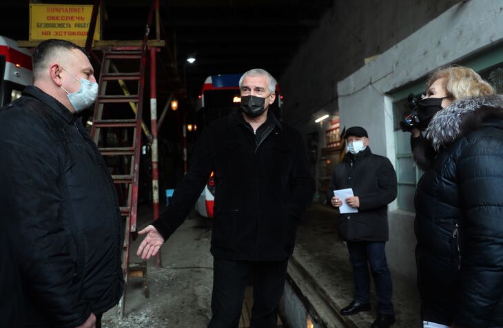 Сегодня в рамках рабочего визита в Евпаторию Глава Республики Крым Сергей Аксёнов посетил МУП «Трамвайное управление им. И.А. Пятецкого».