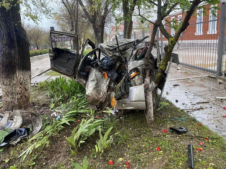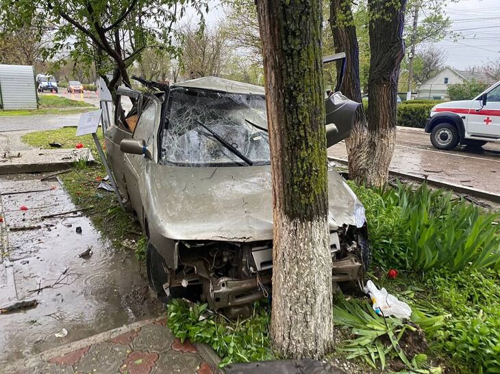 На ул. Революции в Черноморском водитель ВАЗ 2110, двигаясь со стороны ул. Южной в сторону Кирова, не справился с управлением и врезался в опору ЛЭП и дерево.