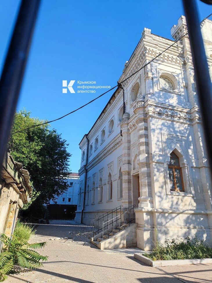 Реставрация караимской кенассы в Симферополе проводилась в части интерьера здания, работы по фасаду были выполнены ещё в 2017 году. Разрушения не касаются конструктивной части здания, повреждена только часть отделки карнизной части. Об этом корреспонденту Крымского информационного агентства рассказал руководитель дирекции по централизованному обслуживанию и развитию учреждений сферы культуры РК Максим Сорока.