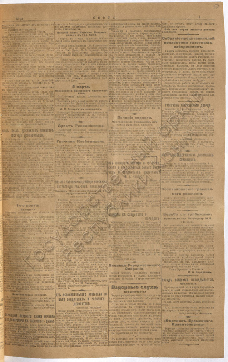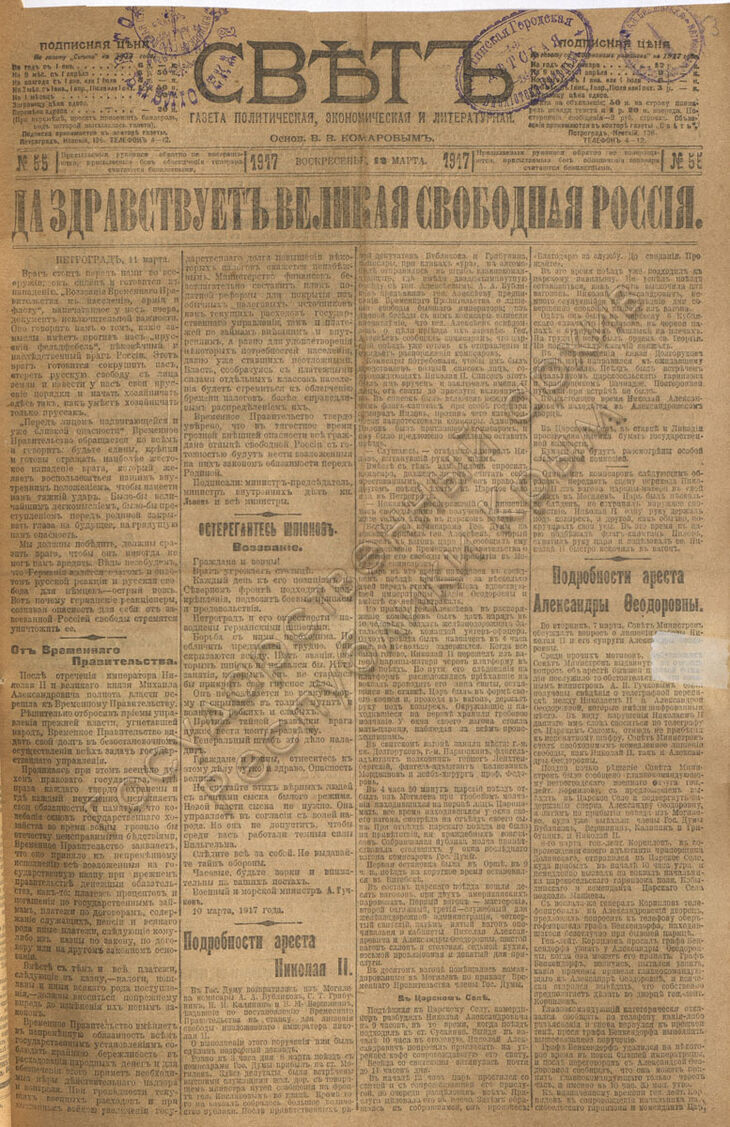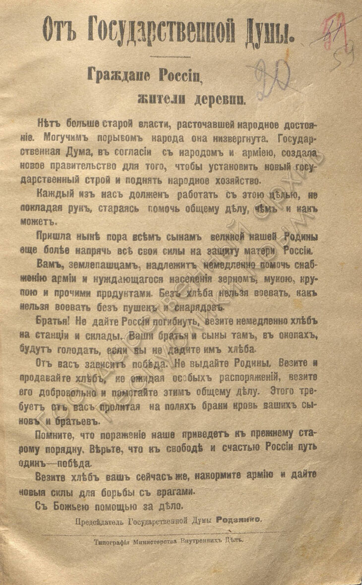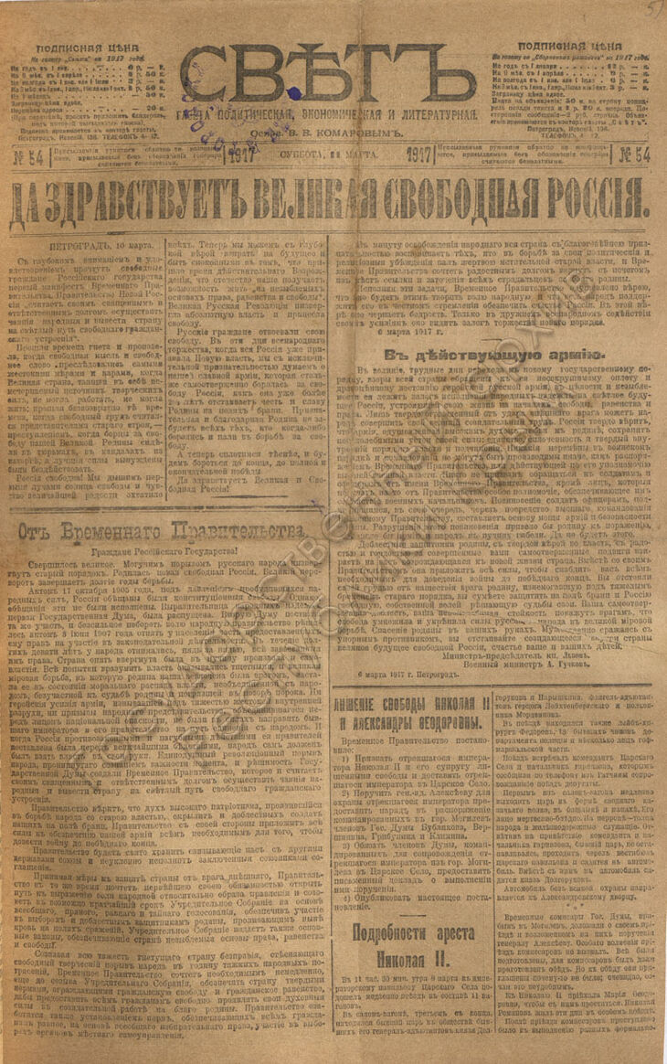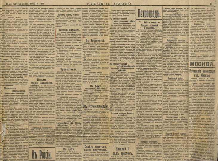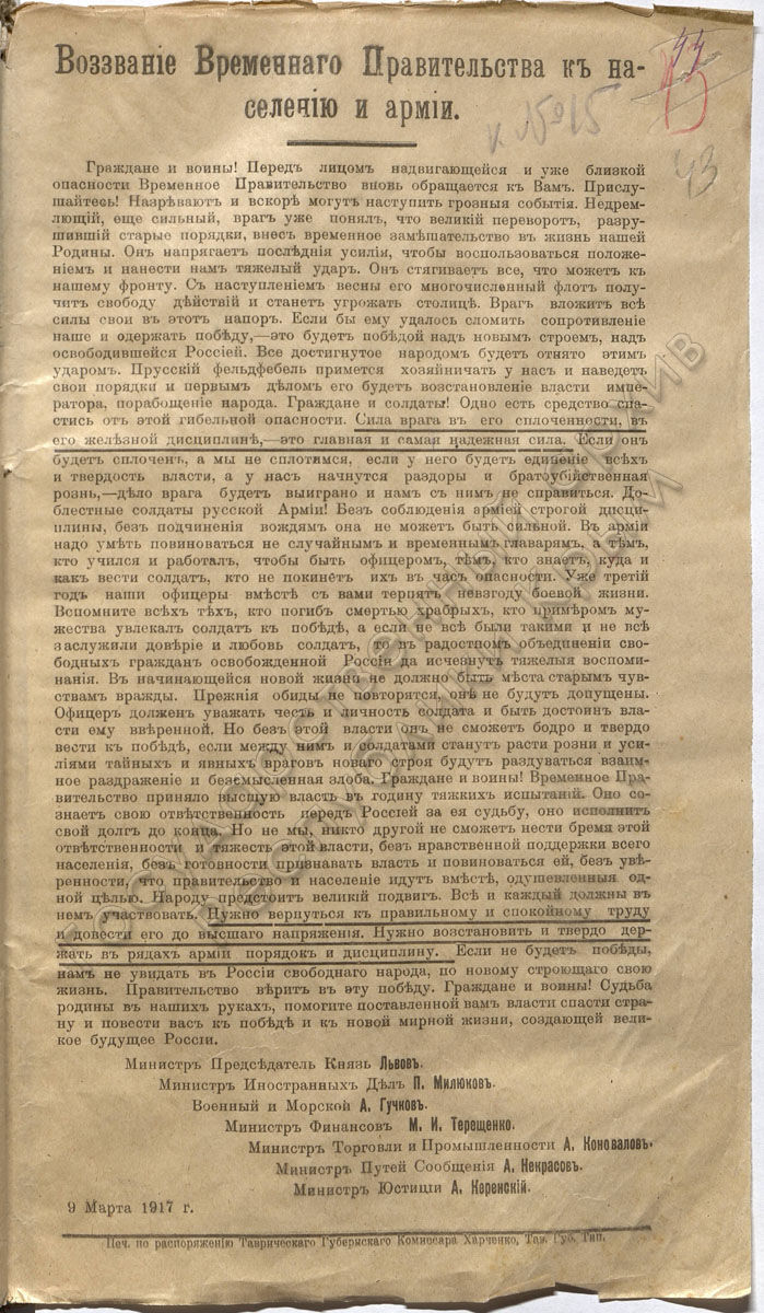 В конце февраля -начале марта 1917 года (по юлианскому календарю) массовые антиправительственные выступления петроградских рабочих и солдат петроградского гарнизона привели к свержению российского самодержавия и созданию Временного правительства.