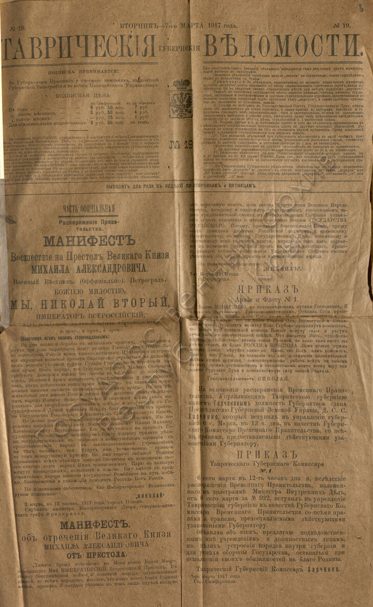 Февральская революция в Крыму. Спецпроект КИА и Госархивной службы Крыма