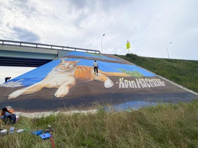 «На выезде из Керчи, возле Крымского моста, мы расписали две опоры дорожной развязки. Нарисовали там Крымский мост, чаек и портрет одного из символов Крыма – знаменитого пушистого блогера, кота Мостика. Это крымская легенда, его любят десятки тысяч людей, поэтому мы решили его изобразить», – сообщил Александр Милицин, резидент арт-кластера «Таврида», лидер команды Desarte365.