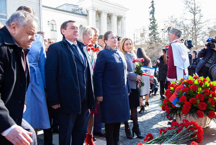 Также в возложении приняли участие председатель Государственного совета РК Владимир Константинов, губернатор Севастополя Михаил Развожаев.