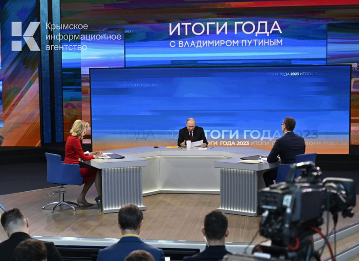Президент РФ Владимир Путин в прямом эфире подводит итоги года и отвечает на вопросы журналистов и жителей страны. Фото: Гала Амарандо «Мир ...