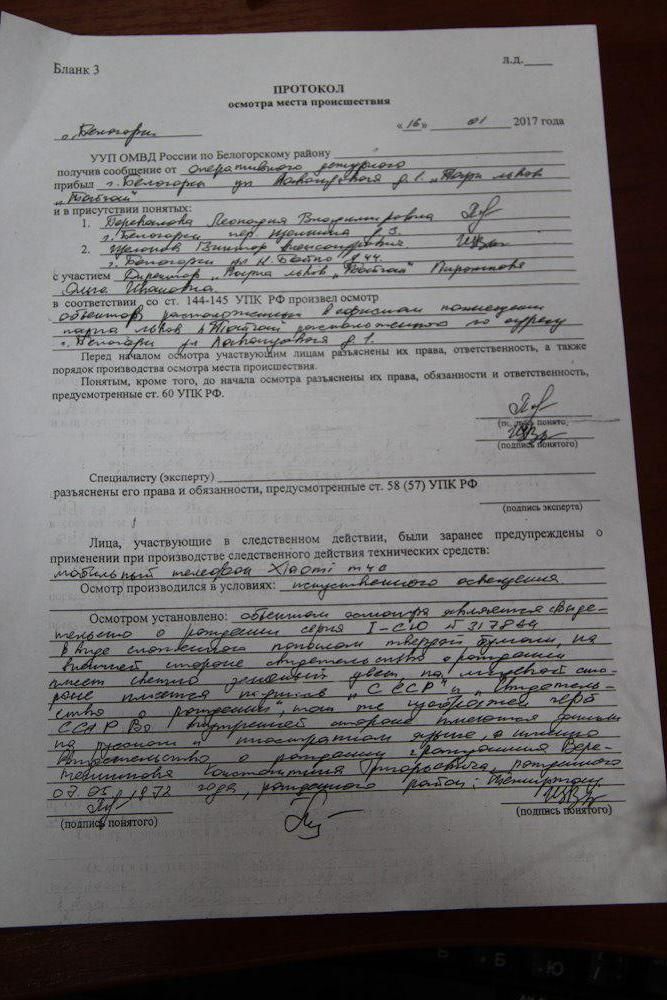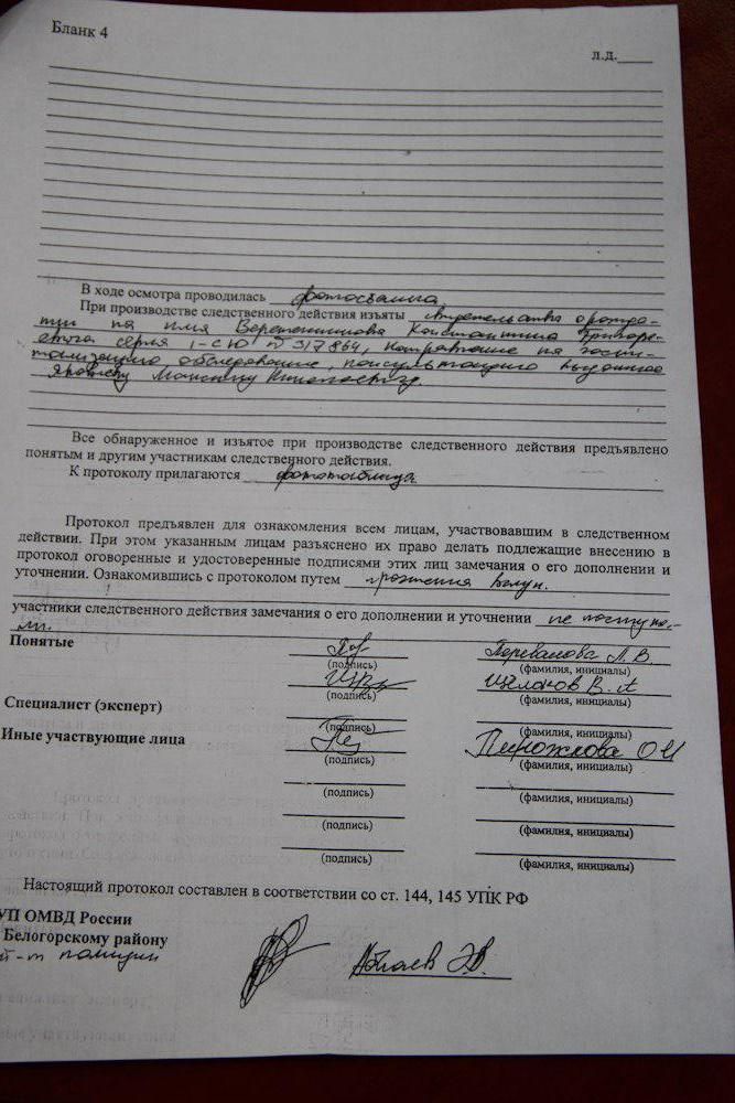 Отметим, что Зубков также предоставил журналистам направление на госпитализацию, которое было выписано Яковлеву в Белогорской центральной районной больнице и протокол осмотра места происшествия.