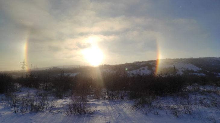 Как пояснил корреспонденту Крымского информационного агентства научный сотрудник Крымской астрофизической обсерватории Сергей Назаров, солнечное гало возникает при совпадении сразу нескольких погодных факторов: морозной погоды, повышенной влажности и наличия перистых облаков небольшой плотности.