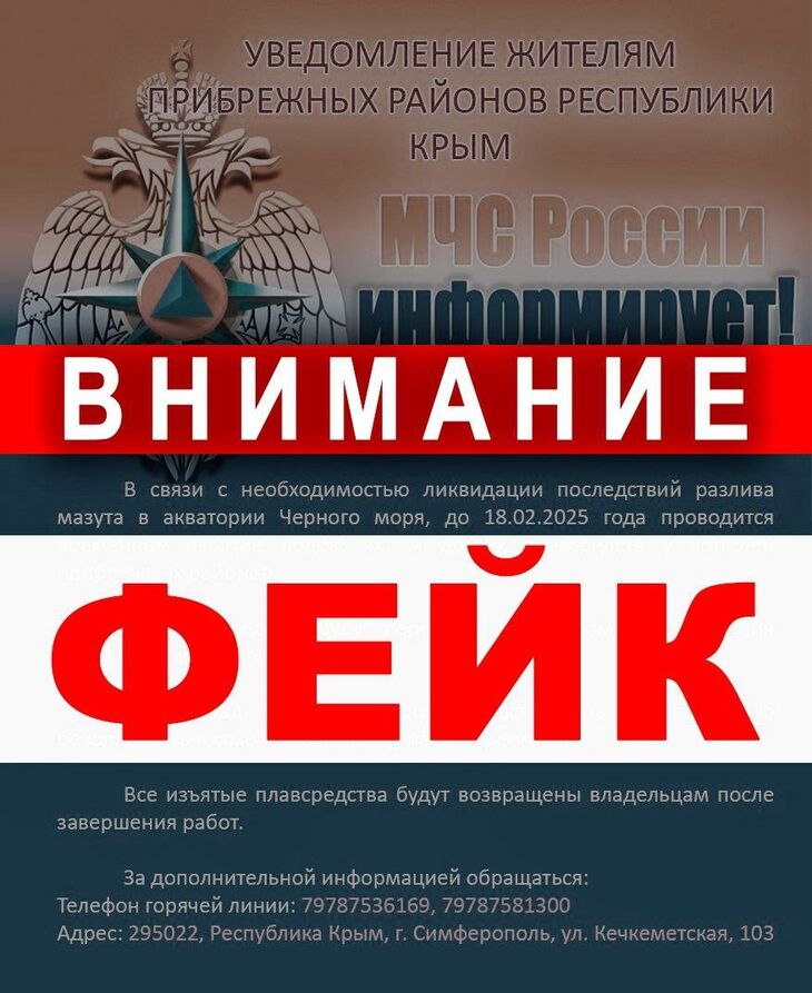 «Главное управление МЧС России по Республике Крым предупреждает: письма подобного содержания рассылаются с фейковых адресов. Доверяйте только проверенным источникам информации!» — говорится в сообщении.