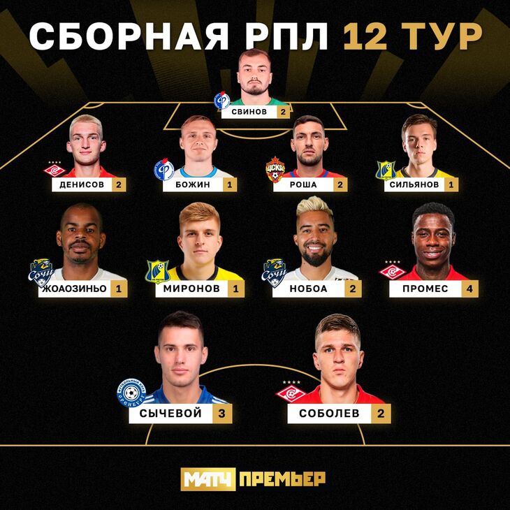 Телеканал «Матч Премьер» назвал символическую сборную 12-го тура. Студент Крымского федерального университета занял место в паре нападающих вместе с форвардом «Спартака» Александром Соболевым.