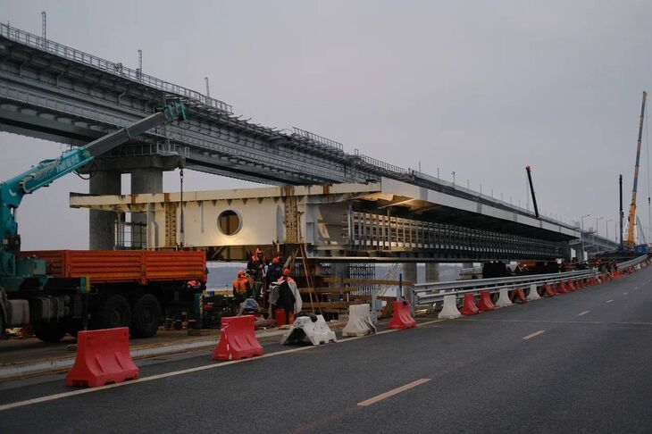 На Крымском мосту завершена надвижка третьего пролета по левой стороне автомобильной части. Об этом сообщил заместитель председателя правительства РФ Марат Хуснуллин.