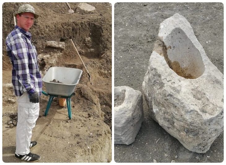 В Керчи на городище Артезиан в ходе исследования пространства между фундаментом храма Зевса Генарха и основанием под мраморный монументальны...