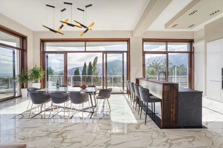 Панорамный вид на море, горы и набережную Ялты, итальянская дизайнерская мебель и 780 квадратных метров площади (для сравнения, площадь стандартного супермаркета — около 600 м²). Такую квартиру продают в Ялте за 167 миллионов рублей.