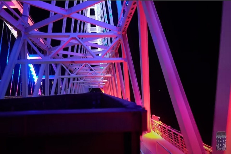 Еще одно видео в соцсети прислал крымчанин Олег Вольный. На ролике отчетливо видно, что съемка велась с крыши пассажирского поезда, который в ночное время суток проехал по Крымскому мосту.
