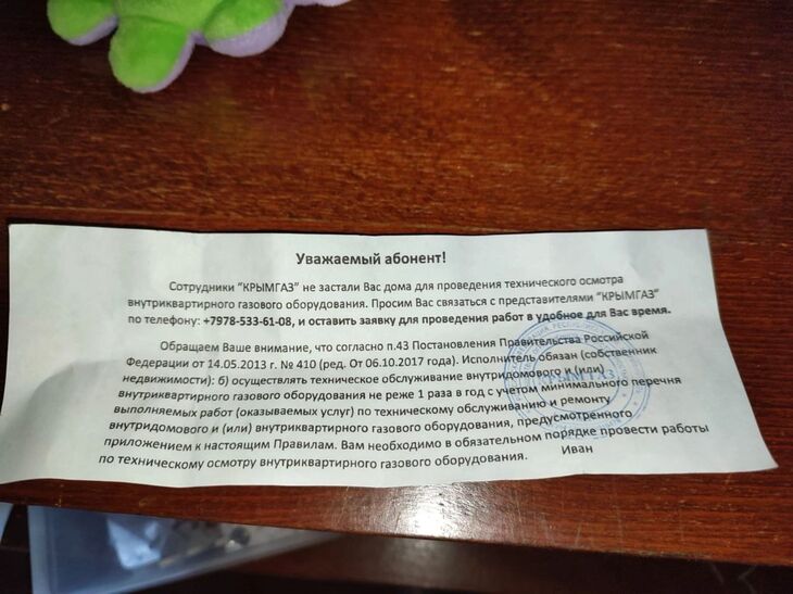 Жители одного из микрорайонов Симферополя пожаловались на возможно мошеннические объявления, поступающие от имени несуществующей организации «Крымгаз».