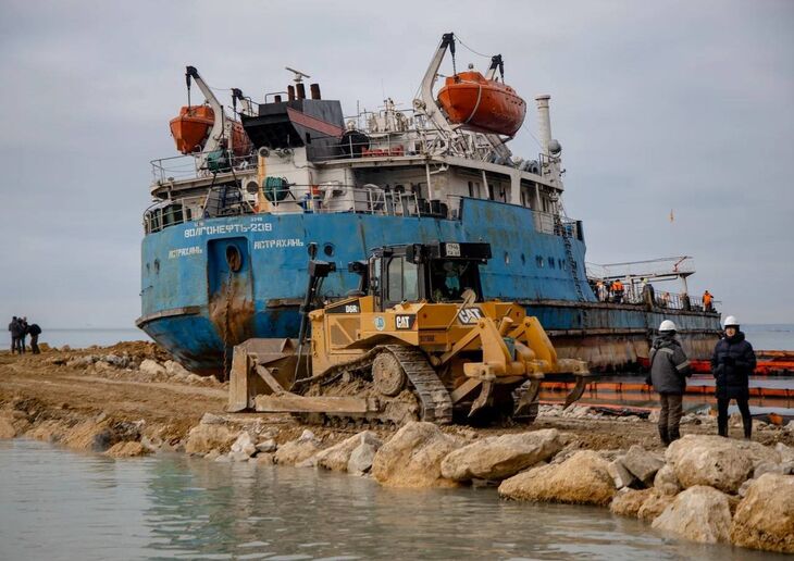 «Специалисты закончили строительство временной дороги к месту крушения и завершают обваловку корпуса — устройство насыпи вокруг кормовой части, которая позволит защитить её от штормов и даст возможность начать откачку мазута из танкера. Его откачают в течение двух недель, работы будут завершены до конца января», — сообщил глава Минтранса Роман Старовойт.