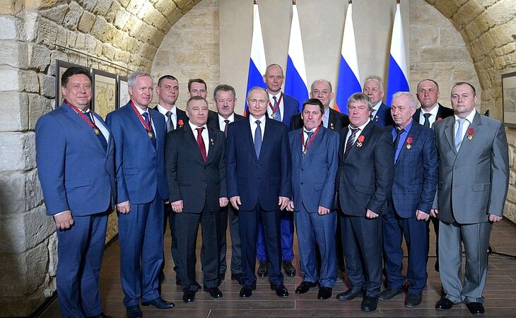 Глава государства вручил ордена и золотые медали «Герой Труда Российской Федерации» строителям Крымского моста. Торжественная церемония прошла в музейно-выставочном комплексе «Константиновская батарея» в Севастополе.