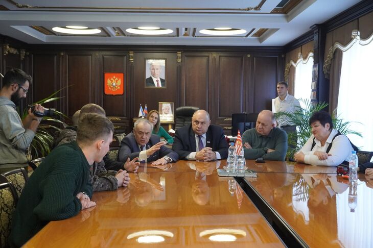 Первый заместитель Председателя Государственного Совета Крыма Ефим Фикс и глава администрации Керчи Святослав Брусаков встретились с мобилизованным керчанами во время их отпуска, который они проводят дома, с семьями.