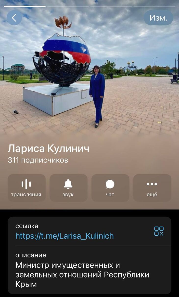 Мошенники создали фейковый аккаунт министра имущественных и земельных отношений Республики Крым Ларисы Кулинич в Telegram и рассылают сообщения.