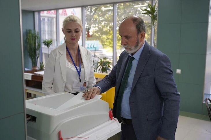 В первый день выборов Муфтий мусульман Республики Крым и г. Севастополь Хаджи Эмирали Аблаев прибыл на избирательный участок и отдал свой голос.