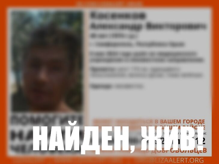 49-летний Александр Викторович Косенков ушёл из медицинского учреждения в неизвестном направлении 8 мая. Его поиски завершились спустя четыре дня.