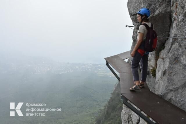 Новый экстремальный туристический маршрут «Небесная тропа» открыли на Ай-Петри. Любители острых впечатлений могут пройти 360 метров по подвесным ступеням и насладиться фантастическим видом на Южный берег Крыма.