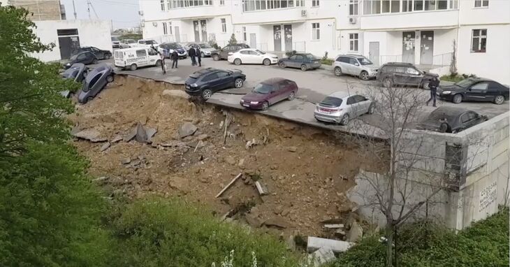 19 апреля этого года вместе с подпорной стеной обрушилась автомобильная парковка, прилегающая к дому, в результате чего пострадали 4 автомобиля.