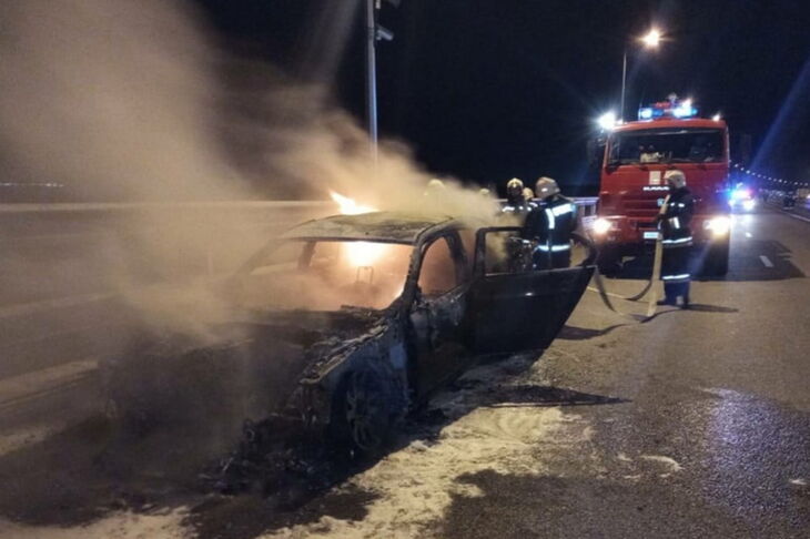 На Крымском мосту вечером 14 апреля произошло ДТП — прямо на ходу загорелся легковой автомобиль марки BMW.