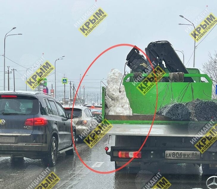 В Крыму снег выпадает настолько редко, что жители республики его массово фотографируют как уникальное явление. Но один из крымских водителей пошёл дальше и решил прихватить с собой необычный сувенир – в кузове перевезти снеговика.