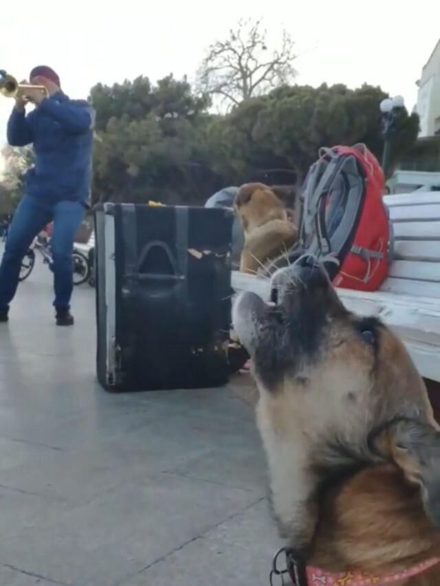 В южной столице Крыма на набережной возле музыканта, играющего на трубе, собрались три собаки, «подпевающие» музыке. Видео местный житель опубликовал в группе горожан в соцсети «ВКонтакте».