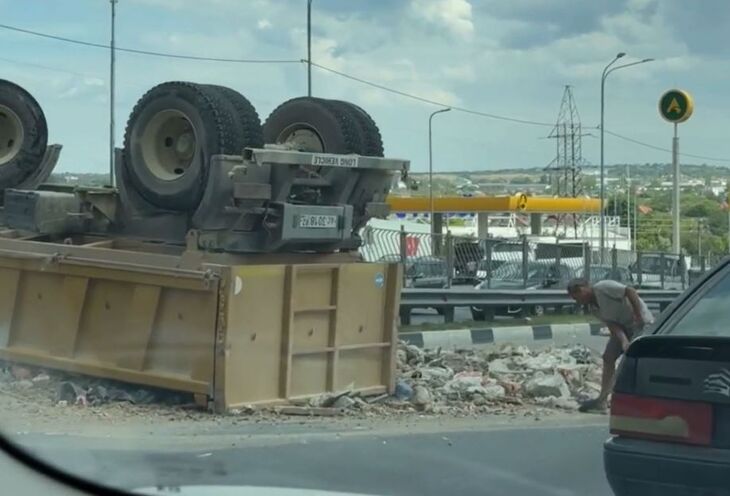 На объездной Симферополя перевернулся прицеп со строительным мусором