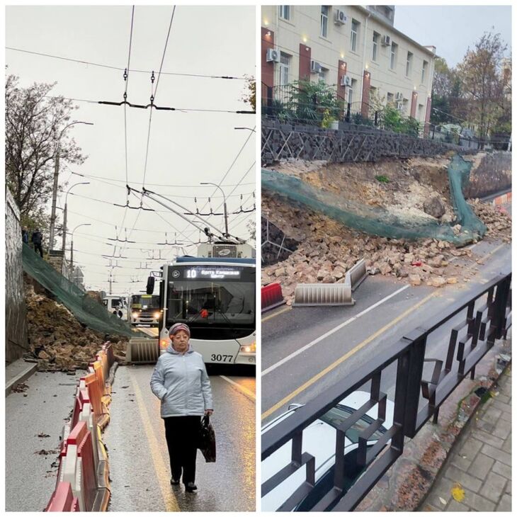 На улице им. Адмирала Октябрьского в Севастополе сегодня обрушилась подпорная стена, дорожное движение оказалось заблокировано по одной из сторон.