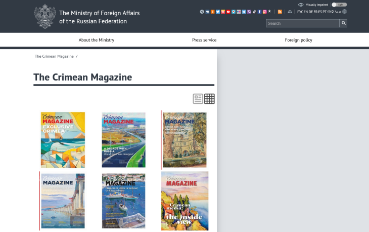 На официальном сайте МИД РФ появился раздел с англоязычными выпусками «Крымского журнала»