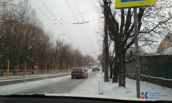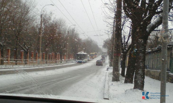 В Симферополе из-за снегопада затруднено транспортное движение, на ряде улиц крымской столицы машины едут с трудом. Об этом сообщает корреспондент КИА.