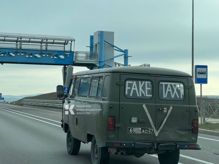 На трассе «Таврида» наши корреспонденты сегодня заметили военный УАЗ с необычной надписью fake taxi на задней двери.