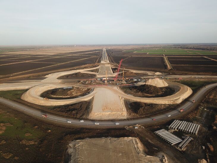 Первый этап строительства нового направления трассы А-289 проходит через Темрюкский и Славянский районы Краснодарского края, здесь возводятся 16 мостов и 8 путепроводов.