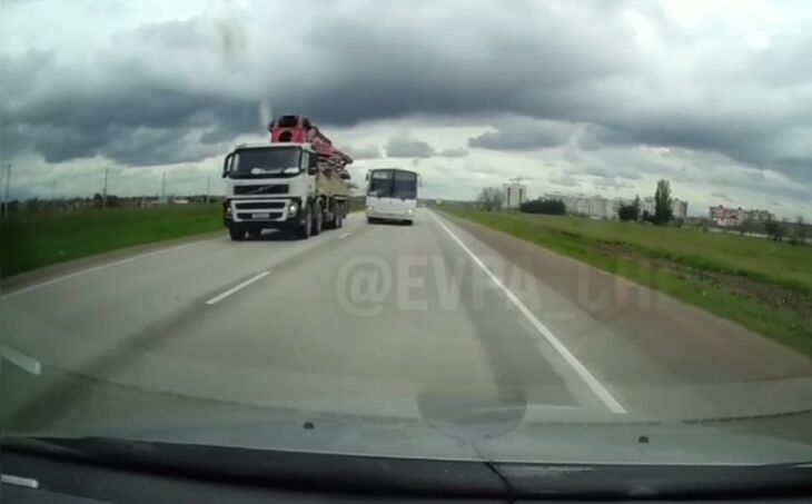 Под Евпаторией в объектив регистратора попал пассажирский автобус, выехавший при обгоне на встречную полосу. Видеозаписью инцидента поделился евпаторийский водитель.