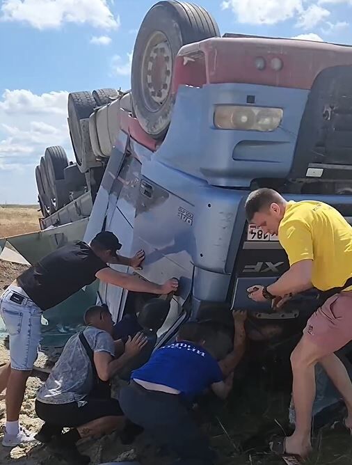 На трассе «Таврида» перевернулась фура