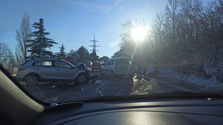 На трассе в Ялте из-за гололеда столкнулись две легковушки
