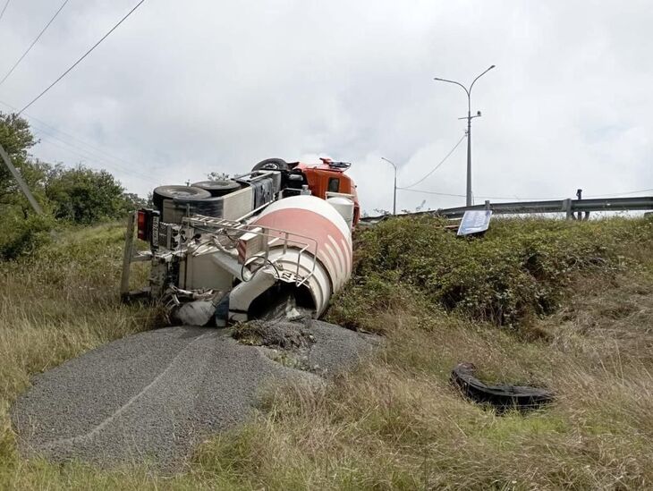 За сегодня это уже второй случай ДТП с участием автобетоносмесителя.
