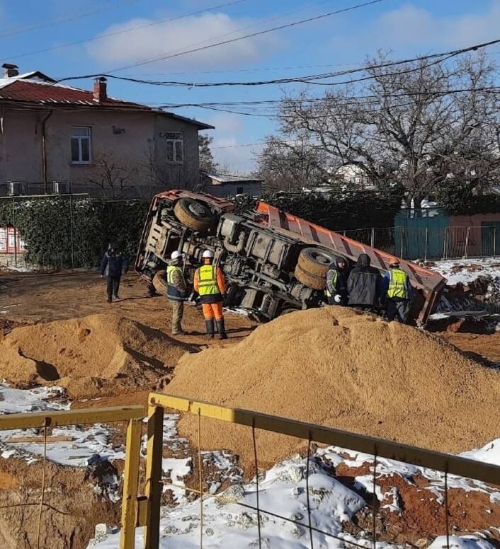 На ул. Караимской в Симферополе еще один самосвал рухнул в канаву