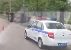 На улице Гагарина в Симферополе перевернулся автомобиль (ВИДЕО)