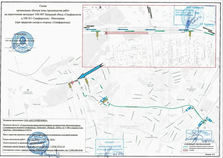Схема объезда и организации дорожного движения транспортных средств вводится на время выполнения строительства транспортной развязки на пересечении объездной дороги в Симферополе.