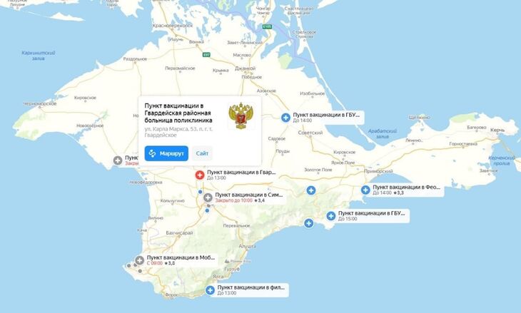 Специалисты Центра управления регионом совместно с Минздравом Республики Крым дважды в месяц обновляют и актуализируют информацию о пунктах вакцинации на картографическом приложении «Яндекс.Карты».